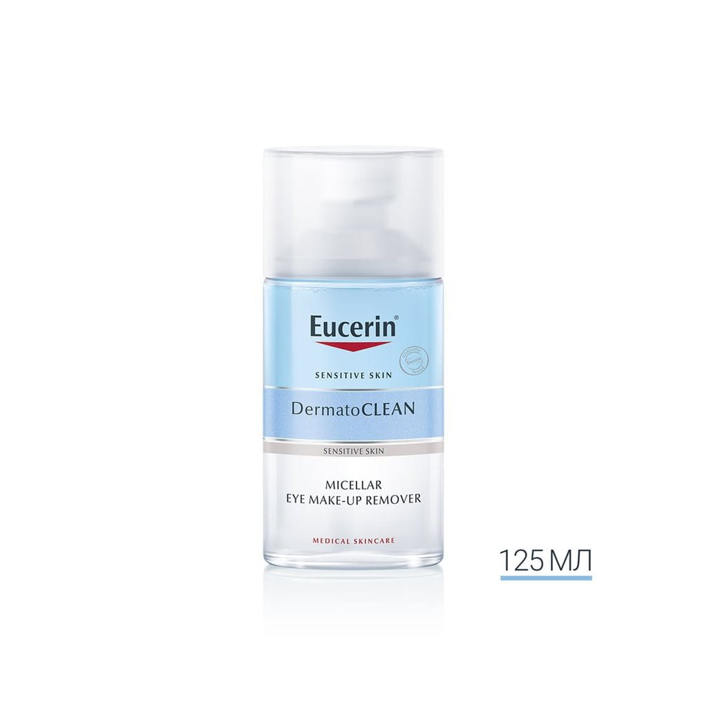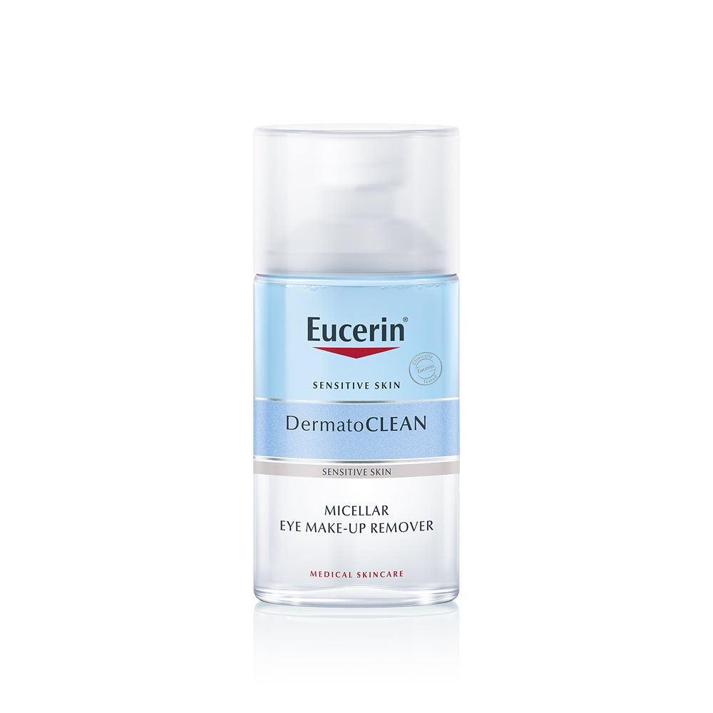 Засіб для зняття макіяжу з очей Eucerin DermatoCLEAN [HYALURON] миттєво знімає звичайну й водостійку косметику, зокрема надстійку туш.
