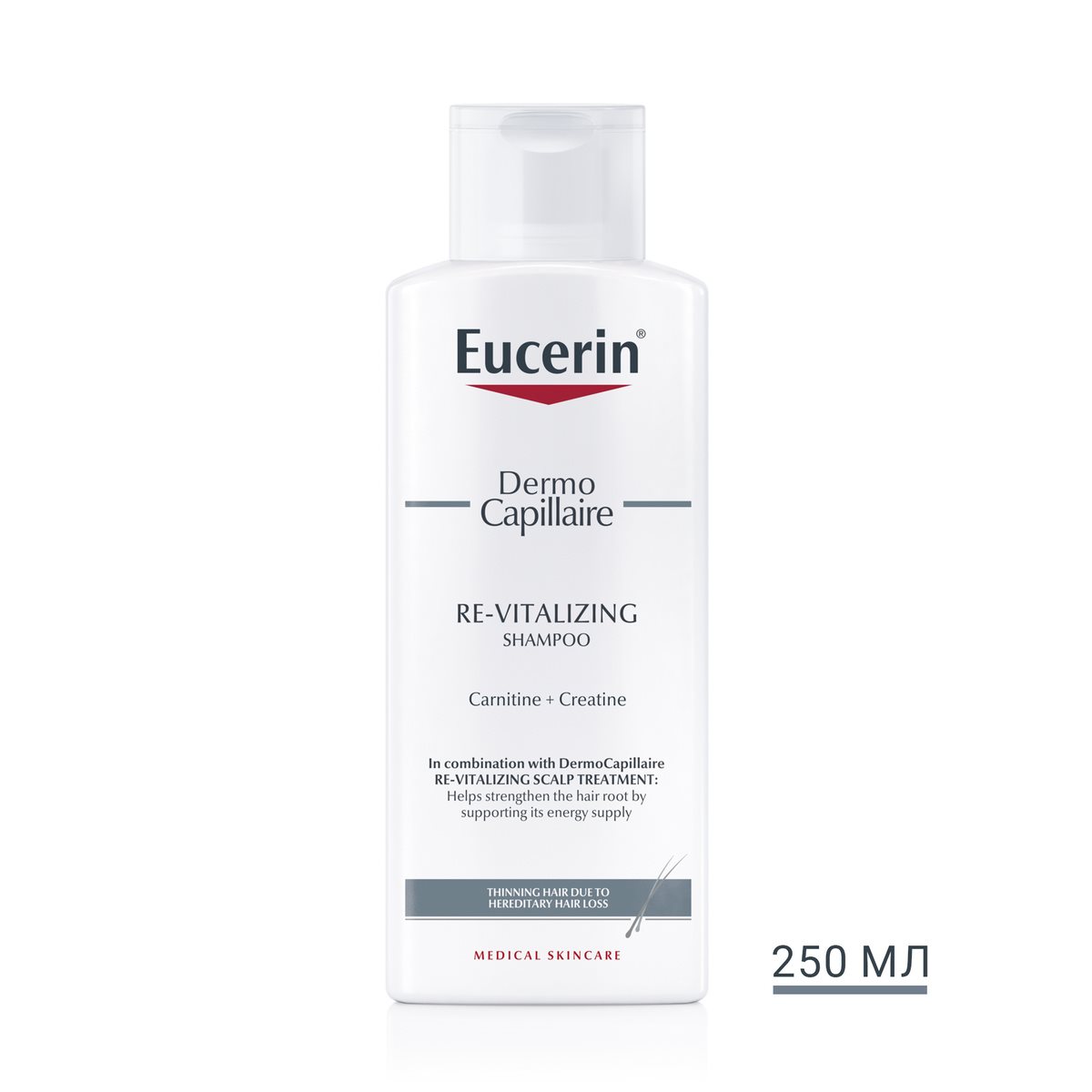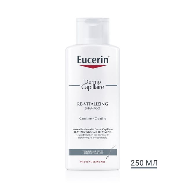 Відновлюючий шампунь проти випадіння волосся DermoCapillaire було спеціально розроблено, щоб підготувати шкіру голови і посилити дію відновлюючого концентрату проти випадіння волосся Eucerin DermoCapillaire. Дерматологічно підтверджено, що відновлюючий курс проти випадіння волосся Eucerin DermoCapillaire допомагає зміцнити корені волосся і відкладає процес випадіння волосся.