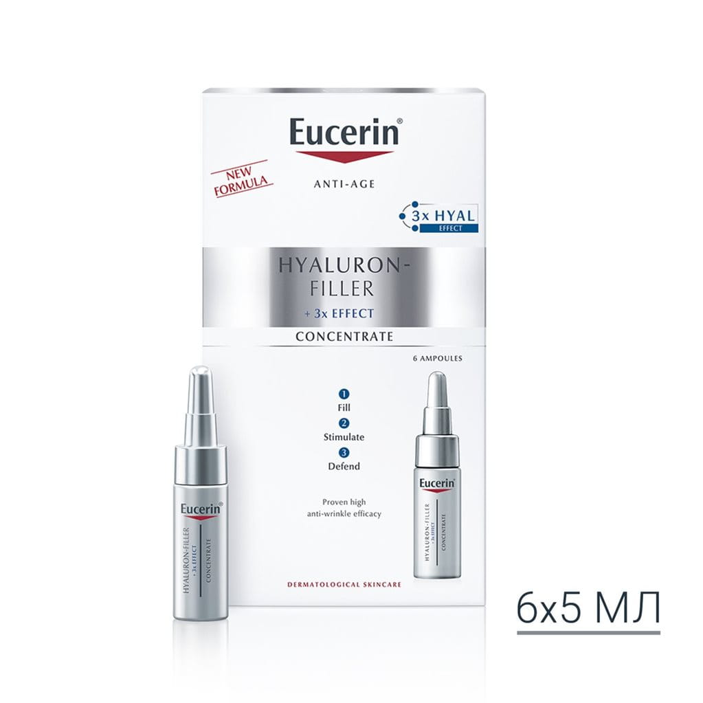 In the morning: Apply Eucerin Hyaluron-Filler Concentrate followed by your Eucerin Hyaluron-Filler Day product and Eucerin Hyaluron-Filler Eye SPF 15. In the evening: Apply Eucerin Hyaluron-Filler Concentrate followed by Eucerin Hyaluron-Filler Night and Eucerin Hyaluron-Filler Eye SPF 15. If you would also like to use Eucerin Hyaluron-Filler Night Peeling & Serum, apply it as a first step before the Eucerin Hyaluron-Filler Concentrate.