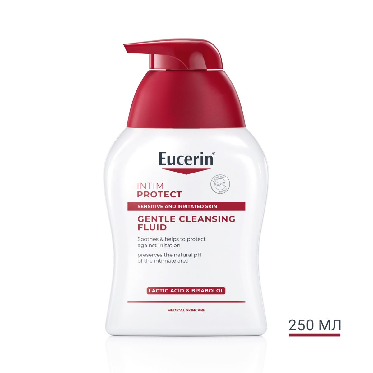 Інтимна зона потребує особливо делікатного очищення. Заспокійливий засіб Eucerin Intim Protect містить споріднену шкірі молочну кислоту та бісаболол, відомий своїми протизапальними властивостями. Засіб підтримує природну мікрофлору піхви та допомагає заспокоїти подразнення.