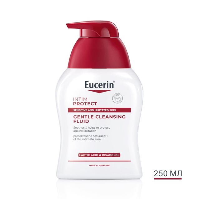 Засіб для інтимної гігієни Eucerin добре сумісний із чутливою шкірою, навіть у випадках дерматозів (таких як вагінальний мікоз або неспецифічне запалення).