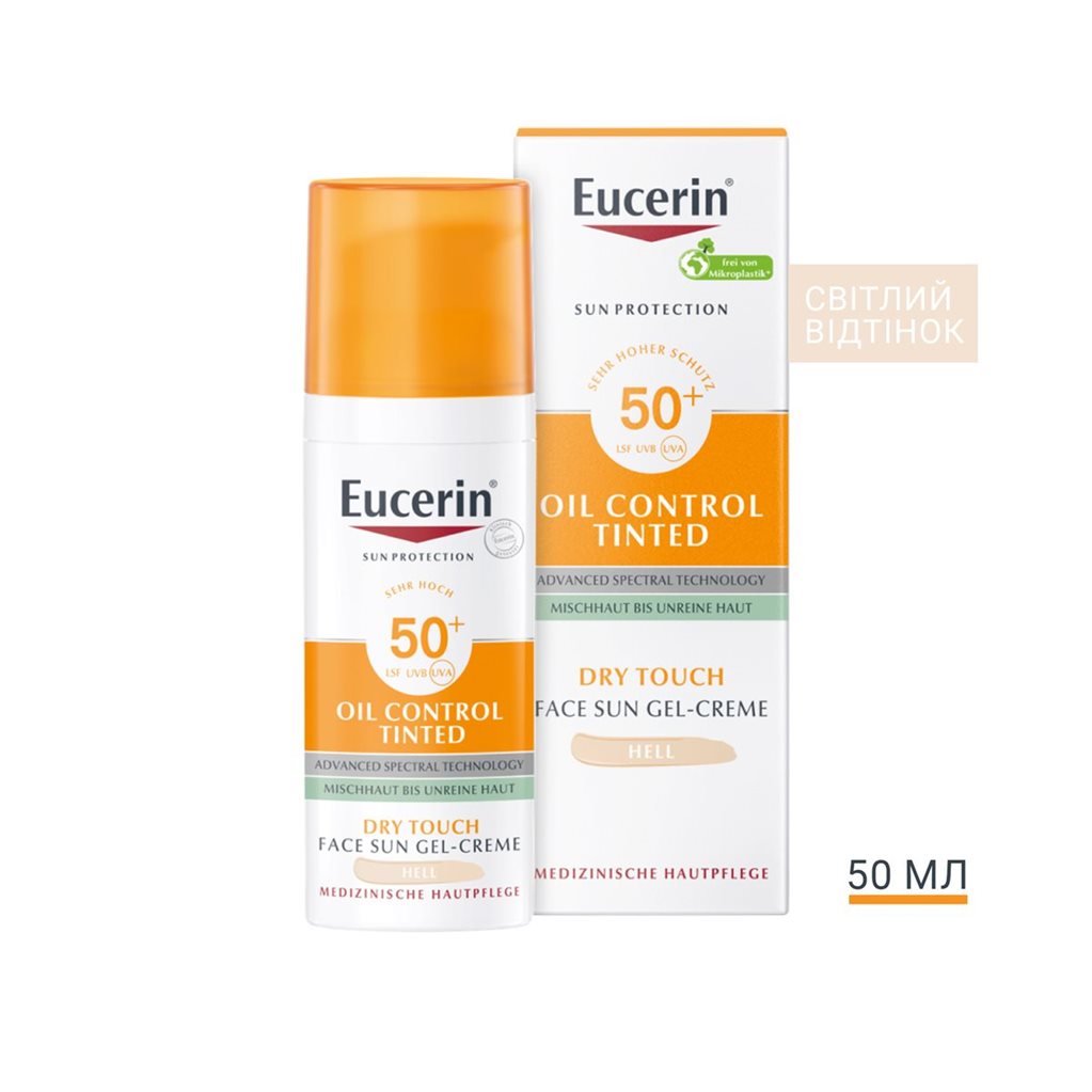 Сонцезахисний гель-крем для обличчя Eucerin Oil Control Tined SPF 50+ з тонуючим ефектом не має аромату та має надлегку нежирну текстуру, яка швидко вбирається. Він пройшов клінічні та дерматологічні випробування та добре переноситься проблемною, схильною до акне й чутливою шкірою.