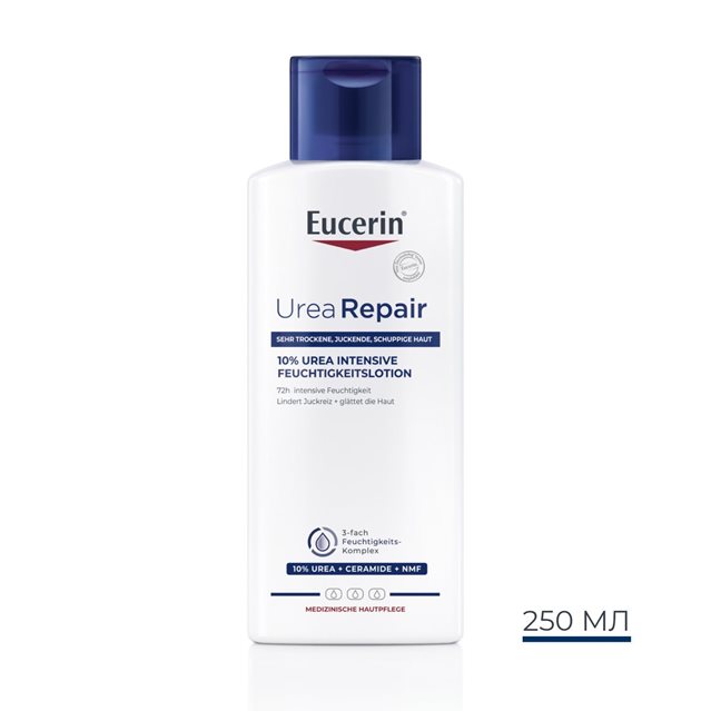 "10% Урея Ріпеір" Зволожуючий лосьйон для дуже сухої шкіри тіла містить високу концентрацію Сечовини, Церамідів та інших Природних зволожуючих факторів для відновлення захисного бар’єра та зменшення втрати вологи. Формула забезпечує миттєве полегшення та довготривалу дію проти сухості до 72 годин.